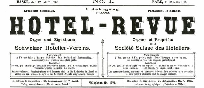 Die 1892 erstmals erschienene Hotel-Revue feiert ihr 130-jähriges Jubiläum. Zu diesem Anlass picken wir aus dem Archiv die interessantesten und unterhaltsamsten Themen und Geschichten, ordnen sie ein…