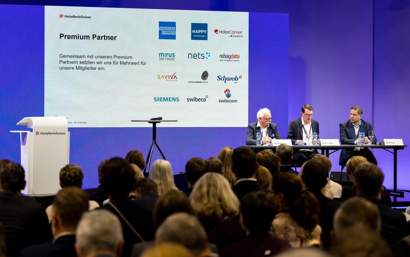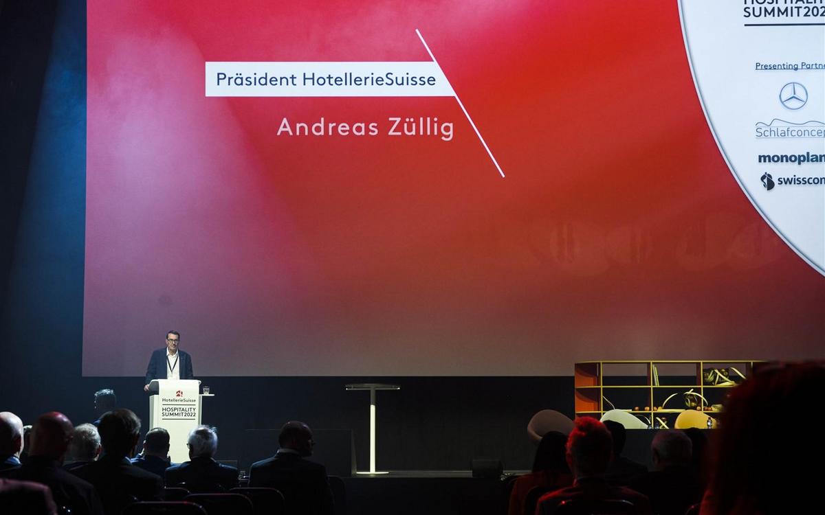 HotellerieSuisse-Präsident Andreas Züllig begrüsst die über 1'000 Gäste. HotellerieSuisse-Präsident Andreas Züllig begrüsst die über 1'000 Gäste. image : Susanne Keller, Philipp Schmidli, Nicole Philipp, Ueli Abt
