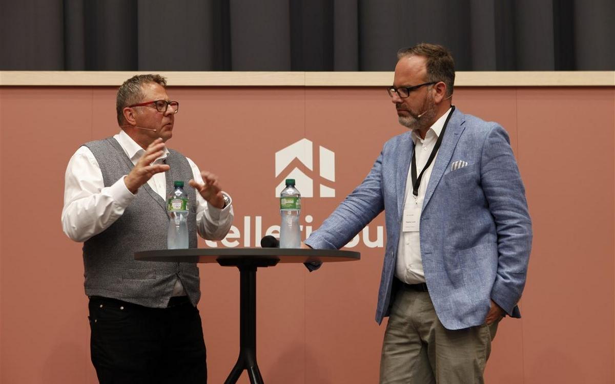 Podiumsdiskussion «We believe in...» mit Daniel Schneider, Gründer, Monoplan AG, Jürg Schmid, Mitinhaber, Schmid Pelli & Partner AG (r.). Podiumsdiskussion «We believe in...» mit Daniel Schneider, Gründer, Monoplan AG, Jürg Schmid, Mitinhaber, Schmid Pelli & Partner AG (r.). image : Susanne Keller, Philipp Schmidli, Nicole Philipp, Ueli Abt