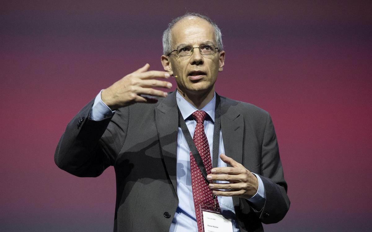 Daniel Büchel, Vizedirektor, Leiter der Abteilung Energieeffizienz und erneuerbare Energien, Programmleiter EnergieSchweiz, bei seinem Keynote-Auftritt zum Thema «Energie 2050 – Wie sieht die energetische Zukunft der Schweiz aus».