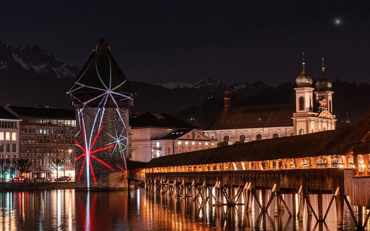 Als wollte er sich vornehm zurücknehmen, zwinkerte der Mond bloss als Sichel über dem Pilatus auf die Stadt, wo am Vorabend der Lilu-Eröffnung von Donnerstag, 6. Januar die 21 Licht-Installationen den Medien präsentiert wurden. Aus 180 Eingaben konnten die Festivalmacher rund um Direktor Thomas Fritschi auswählen.