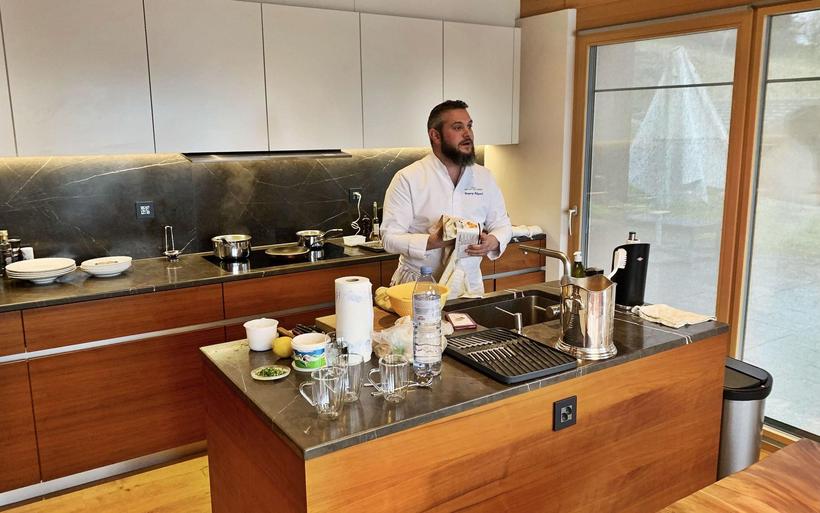 Benjamin Breton, qui fut étoilé au Fiske Bar à Genève, va col­laborer avec Chef at home. Il lui arrive déjà de cuisiner chez des privés: «Cela permet de briser la glace, de découvrir l’univers privé d’un banquier ou d’un notaire par exemple, mais je veux toujours garder ma trame pour pouvoir travailler mes techniques et mes associations de goûts, sinon je n’y vais pas.» Le chef, qui recherche en ce moment à reprendre un établissement en France voisine, se retrouve souvent dans des cuisines bien équipées: «J'emmène toujours quelques outils mobiles habituels, dans mon travail, comme un thermoplongeur pour réaliser quelques cuissons sous vide.»