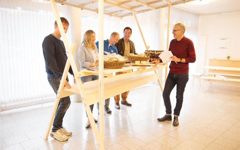 Der Anspruch von graubündenViva, regionales Schaffen zu fördern und ins Schaufenster zu stellen, beschränkt sich nicht auf den Lebensmittelbereich. Auch Design und heimisches Handwerk finden im Projekt ihren verdienten Platz. In Zusammenarbeit mit dem Projektpartner graubündenHolz und dem Churer Design- und Handwerk-Studio Okro sind in den letzten Monaten Infrastrukturen aus Bündner Fichte und Ahorn entwickelt worden, welche bei zahlreichen Veranstaltungen von graubündenViva zum Einsatz gelangen.