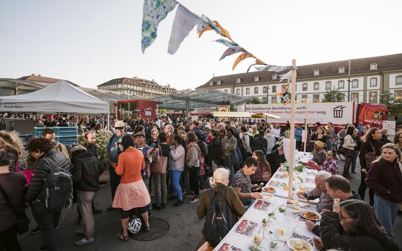 Die SV Stiftung unterstützte finanziell dieses Jahr bereits die Durchführung eines von über 30 Organisationen mitgetragenen Foodsave-Banketts auf dem Bahnhofplatz in Bern, an dem 2000 Passantinnen und Passanten unter freiem Himmel von rund 200 freiwilligen Helferinnen und Helfern gratis bekocht und bewirtet wurden.