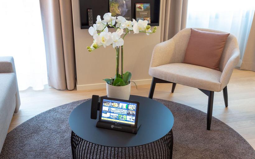 Die Kommunikation mit den Hotelgästen findet anstatt per Telefon per Tablet statt. Die Tablets beinhalten zusätzlich Informationen über die Region, Gästeinformation, Room-Service, Speisekarte, Webshop von Merchandising-Produkten und weitere Zusatzdienstleistungen. (htr)