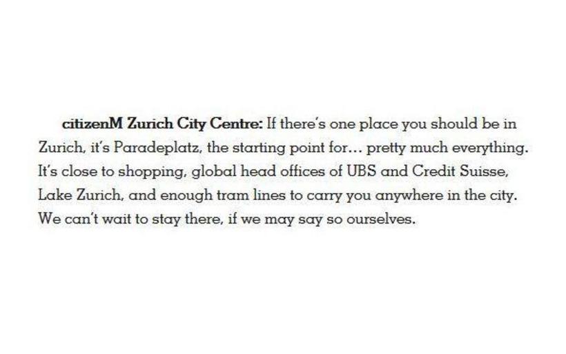 citizenM Zurich City Centre: If there’s one place you should be in Zurich, it’s Paradeplatz, the starting point for… pretty much everything. It’s close to shopping, global head offices of UBS and Credit Suisse, Lake Zurich, and enough tram lines to carry you anywhere in the city. We can’t wait to stay there, if we may say so ourselves.