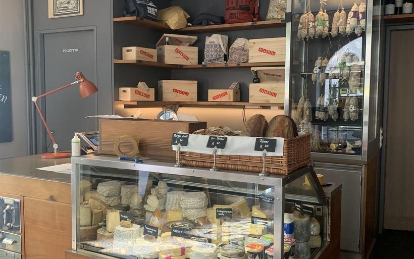 Die regionalen Produkte in der temporär wieder zu einem «Consum» umgebauten Bar stammen von den Lieferanten, die bis vor dem Lockdown die Krafft-Gruppe mit ihren Restaurants und Bars aber auch Cateringbetriebe der Stadt beliefert hatten. «Die sitzen allen auf ihrer Ware und sind froh, wenn sie diese doch noch verkaufen können», so Leonardt. «Unsere langjährigen Lieferanten sind nun also die Hauptlieferanten für unseren Laden». Verkauft werden Grundnahrungsmittel, wie Milchprodukte, Mehl, Gemüse, Früchte vom Bauernhof aber auch Fleisch vom Metzger.