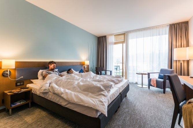 Zudem fasst der Betrieb einen grossen Fitnessraum mit Technogym Geräten und einem Gymnastikraum mit wechselnden Gruppenkursen. Weiter stehen ein direkter Zugang zum Strand des Thunersees und mehrere Liegewiesen, sowie Lauf- und Spazierstrecken auf dem Areal und Boote sowie Stand Up Paddles, Fahrräder und Elektrobikes den Gästen zu Verfügung. (htr/it)