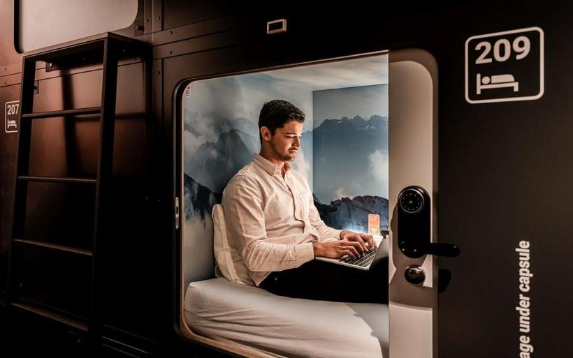 Das neue Kapselhotel liegt direkt gegenüber dem Check-in 1 am Flughafen Zürich und verfügt dadurch über eine ideale Lage. Die 144 Schlafkapseln beinhalten auch sechs hindernisfreie sowie eine rollstuhlgängige Schlafkapsel. Die Schlafkapseln werden in der Schweiz designt und produziert, sind abschliessbar und schallisoliert, so dass Gäste auf kleinstem Raum die grösstmögliche Privatsphäre geniessen.
