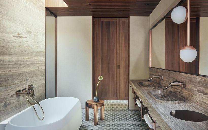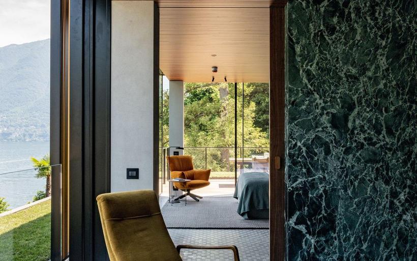 Riche en matériaux avec ses plafonds en bois de noyer Canaletto, ses murs en pierre Verde Alpi et ses sols en Ceppo di Gre et en terrazzo vénitien, ses tissus inspirés de la mode des écharpes des années 1950 et ses motifs paysagers du lac de Côme, la suite n’a pas son pareil dans la région. La décoration intérieure rend hommage au design italien emblématique, y compris les nouveaux meubles de Patricia Urquiola, que les clients peuvent acheter. Le botaniste français Patrick Blanc est également de retour, ajoutant un jardin vertical sculptural à la façade du bâtiment sous la suite.
