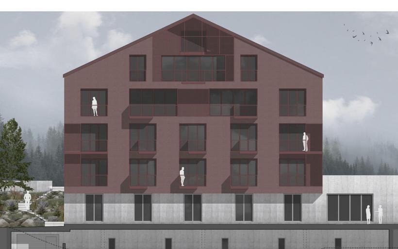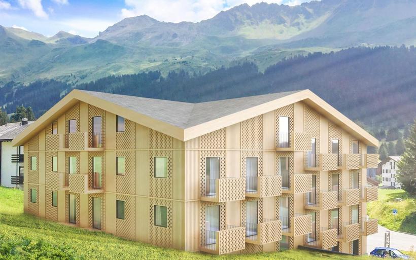 Besonderes: Bau nachhaltig und ökologisch, wenige Gehminuten vom Hotel, Wohnungen auch für Pärchen und Familien, für Mitarbeitende und für Einheimische. Garten zur Allgemeinbenutzung, Innenparkplätze.