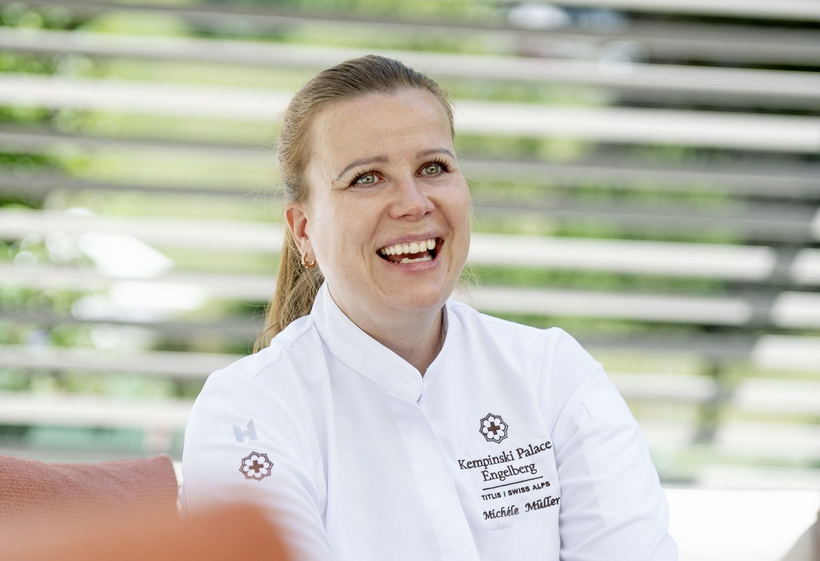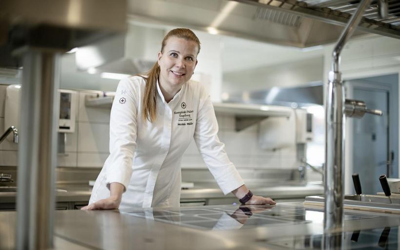 Noch ist die Crew der 40-jährigen Berlinerin ganz neu. Seit gut einem Monat bespielt ihr 20-köpfiges Team die Gastronomie des jüngst eröffneten Luxushotels. Diese umfasst das Cattani Restaurant, The Palace Bar, die Habanos Cigar Lounge, den Wintergarden, das Frühstück und den Bankettbereich. In ihrer neuen Aufgabe steht Michéle Müller noch immer regelmässig selber am Herd.
