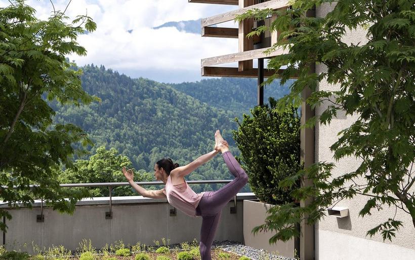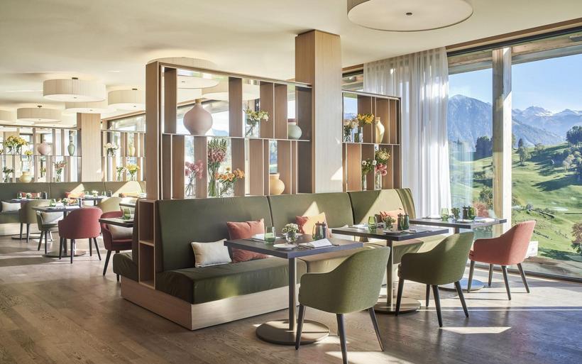Unterschiedliche Naturfarben in Kombination mit Kräuter- und Pflanzenmotiven in Bildern, Textilien, Teppichen und Tapeten – alles, inklusive der freistehenden Möbel und Leuchten, kommt aus dem Matteo Thun Atelier Mailand. Raumhohe Fenster und einladende Terrassen lassen Innen- und Aussenbereiche verschmelzen. Kräutergärten auf verschiedenen Stockwerken und viele Elemente, die botanische Dekore facettenreich visualisieren, unterstreichen das tonangebende Thema von «Healthy by Nature».
