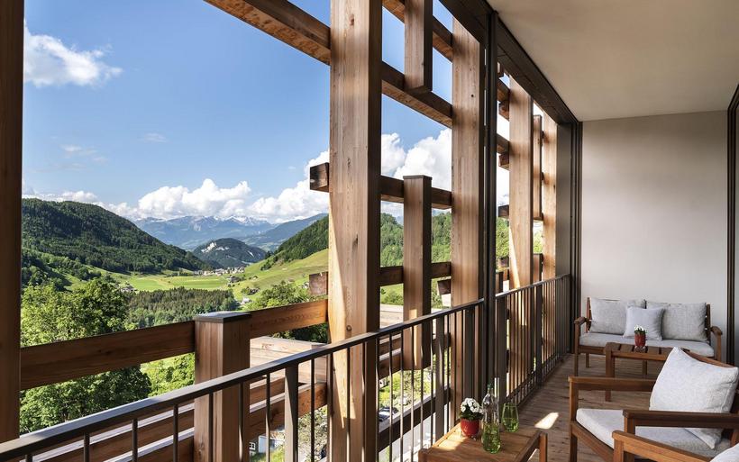 Die Instandsetzung des gesamten Resorts ist dem Mastermind Bruno H. Schöpfer zuzuschreiben. Für das Waldhotel holte er sich den italienischen Architekten Matteo Thun an Bord. Bei der Gestaltung dieses innovativen Hotelkomplexes stand die Natur im Mittelpunkt und war Ausgangspunkt für den Entwurf. Es geht um den Wald, die Luft, den Berg, um Gesundheit und einen gesunden Lebensstil. Die Grundidee setzt sich im Inneren des Fünf-Sterne-Hotels mit dem Botanic Design fort. Organische Formen, warme Farben und natürliche Materialien, die eine entspannende, positive Atmosphäre schaffen, dominieren im gesamten Haus. Jedes Stockwerk hat ein eigenes Design-Motto.