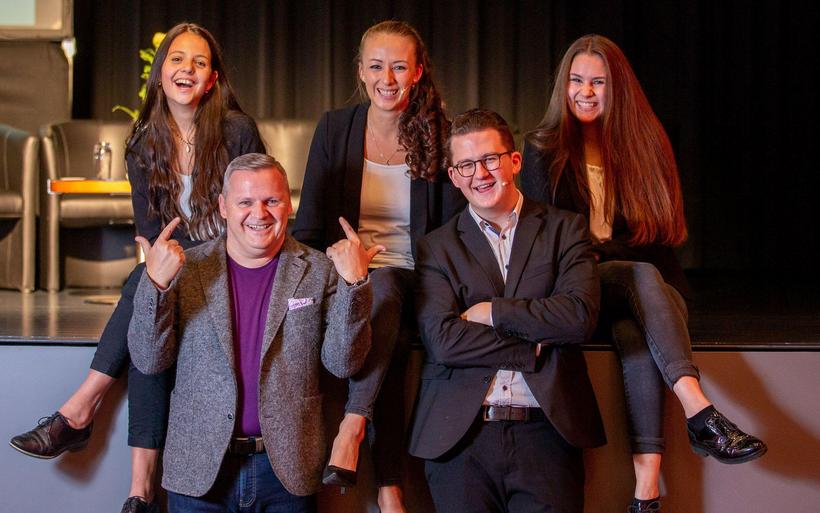 Vier Nachwuchskräfte bildeten das OK der diesjährigen Plattform. Sie sind zwischen 17 und 23 Jahren jung und gehören zu den begehrten Nachwuchstalenten: Colin Dudler vom Hotel Sedartis, Marija Lilic vom «Belvoirpark», Chiara Notter vom Radisson Blu Flughafen und Gianna Tinner vom «The Dolder Grand». Jörg Buckmann hat das Quartett bei der Organisation des Anlasses begleitet.