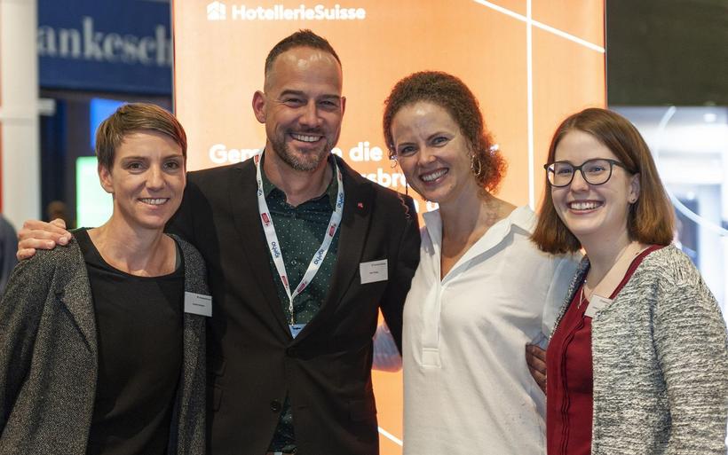 Andrea Scherler, Verantwortliche Campus by HotellerieSuisse, Reto Rüegg, HotellerieSuisse, Corinne Moser, Messeleiterin MCH Basel, Dorothea Portmann, Kommunikation HotellerieSuisse (v.l.). image : Miriam Schwarz