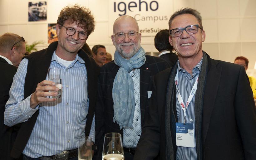 Georges Widmer, Verwaltungsrat GEFAB Genossenschaft, Parkhotel Gunten, Guido Henzmann, Gründer und Innenarchitekt Ligno In-Raum (v.l.). image : Miriam Schwarz
