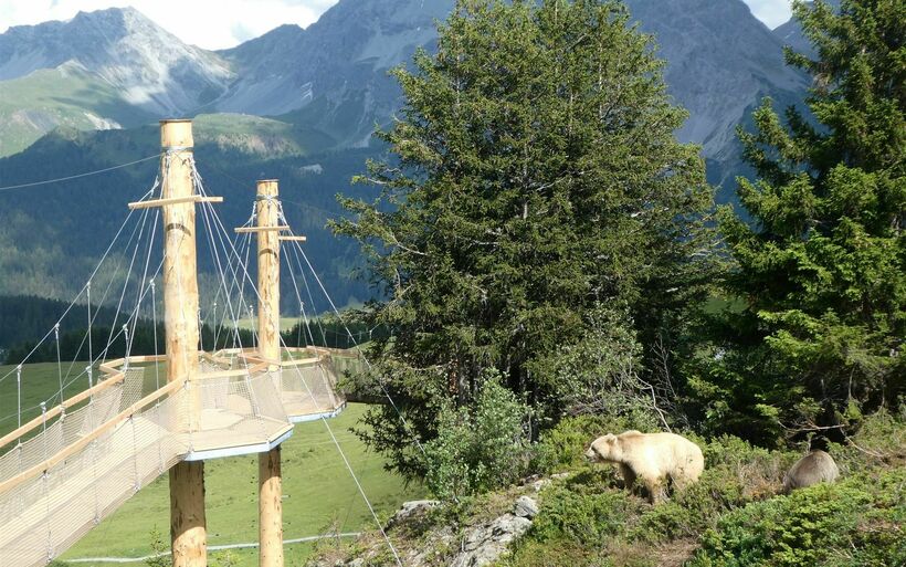 Der Entscheid, den Abenteuerweg zu bauen, erfolgte unter der Bedingung, dass den Bären dadurch keinerlei Nachteile entstehen. Der Abenteuerweg nimmt den Bären in der fast drei Hektaren grossen Naturlandschaft keinen Platz weg und schränkt sie in ihren Freiheiten nicht ein. Ebenfalls bietet der Pfad den Tierpflegern bessere – für die Bären mit Suchaufwand verbundene – Fütterungsmöglichkeiten, was zu einem Mehrwert der Bären führt, wie Arosa Tourismus, Vier Pfoten und Arosa Bärenland in einer gemeinsamen Mitteilung festhalten. (htr)[RELATED]