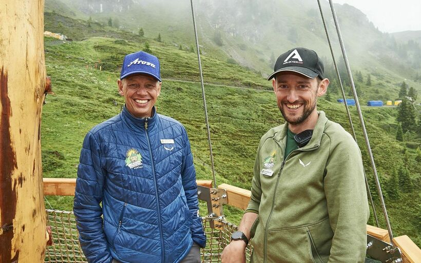 Der Bau des Abenteuerwegs begann in den von Einschränkungen geprägten Coronazeiten. Dies mag für einige etwas mutig klingen, jedoch konnte dies durch die Koordination des Inszenierungsspezialisten «Erlebnisplan» und der fachkundingen Bauleitung der Baufirmen ohne Probleme durchgeführt werden. Die Baumstämme für die Träger wurden übrigens alle aus dem Tal Schanfigg bezogen.
