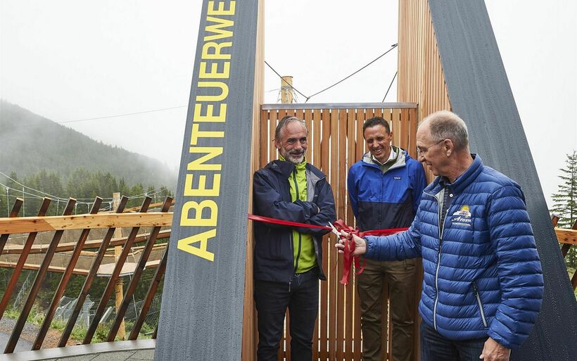 Im Anschluss betraten die ersten Gäste die Hängebrücke und konnten die drei Bären auf Augenhöhe beobachten. Der «schwebende» Abenteurweg führt direkt von der Besucherplattform aus in luftiger Höhe in Richtung des felsigen Teils der Arosa Bärenland Anlage. Die Gäste sehen dort die Bären aus grosser Distanz und einer neuen Perspektive im Waldteil der Nordanlage. Dort erhalten sie einen erlebnisreichen Einblick in die steinigen Passagen der Aussenanlage Süd. Der 80 Meter lange Weg, der zu 100 Prozent durch zweckgebundene Spenden und die Stiftung Arosa Bären finzanziert wurde, bringt sehr viele positive Punkte mit sich. Er ermöglicht den Besuchern weitere Einblicke in die Steinlandschaft und eine Weitsicht ins obere Schanfigg, wobei der höchste Punkt sechs Meter über dem Boden liegt.