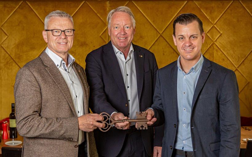 Der Verwaltungsrat, unter dem Präsidium von Andreas Lauterburg, bedankt sich während der symbolischen Schlüsselübergabe bei Roland Barmet-Garcia für die erfolgreiche Ära und freut sich auf die Intensivierung der Zusammenarbeit mit Thomas Ulrich. (htr/npa)