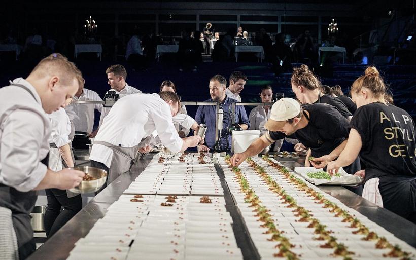 Kitchen Battle Zürich In der Aktionshalle der Roten Fabrik kochten an fünf Abenden zehn Teams und zeichneten einen Querschnitt durch die vielfältige Gastronomie der Stadt Zürich. Gestartet wurde am Mittwoch mit dem Nightlife Battle zwischen Samigo Amusement und der Equipe von Razzia/Bederhof, letztere entschieden den Abend für sich.