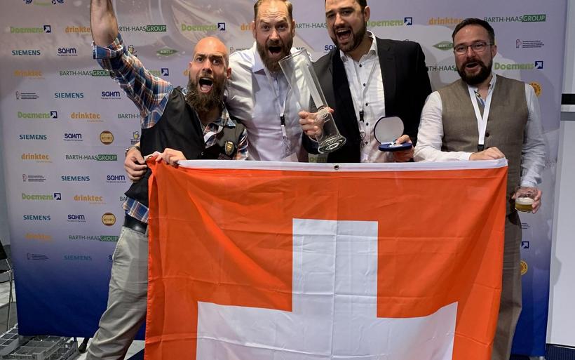 Mit dabei auch die vier Schweizer Bierexperten Martin Droeser (Gelterkinden), Patrick Thomi (Winterthur), Lukas Porro (Rheinfelden), und Gregor Völkening (Affoltern am Albis), die sich in mehreren Trainings auf diesen Wettkampf vorbereitet hatten.
