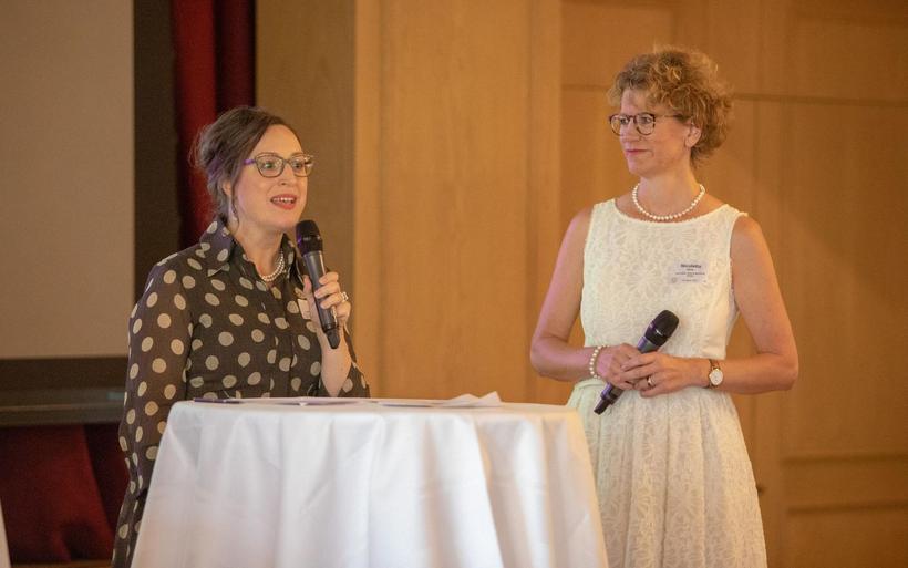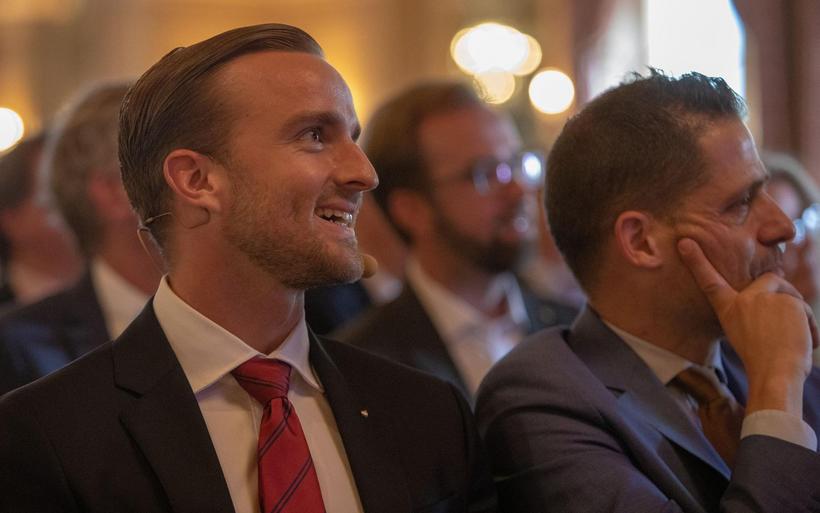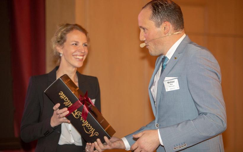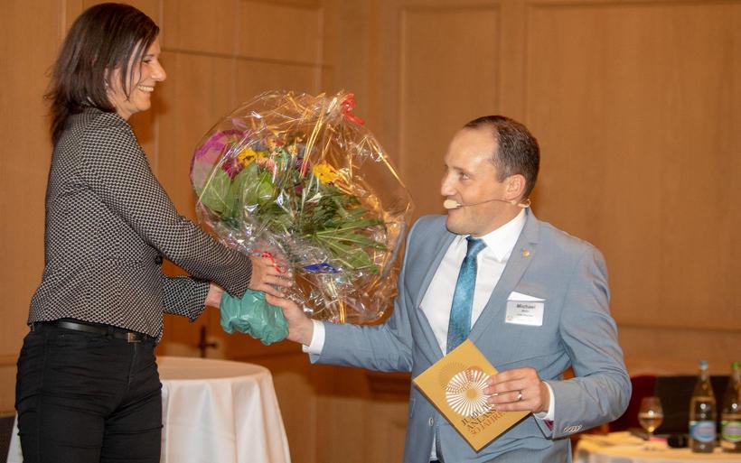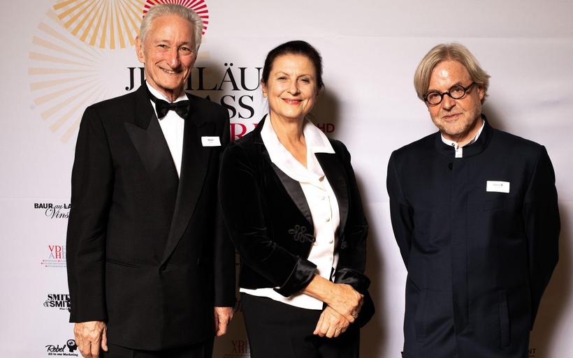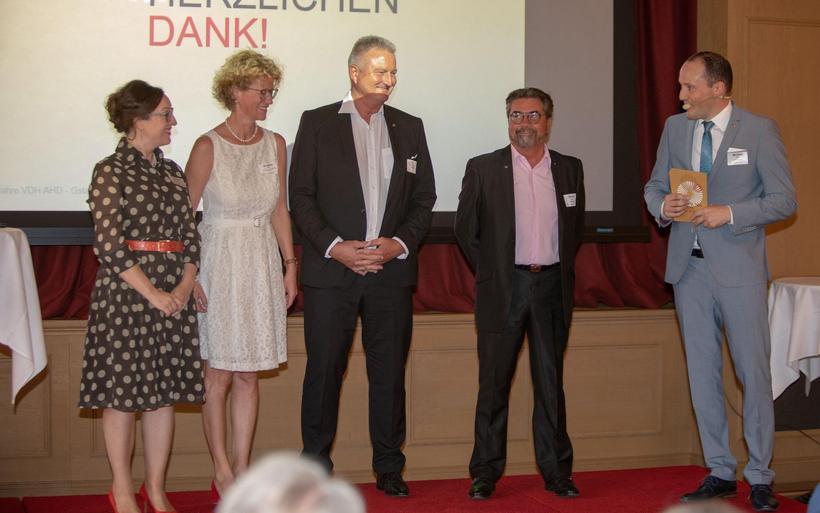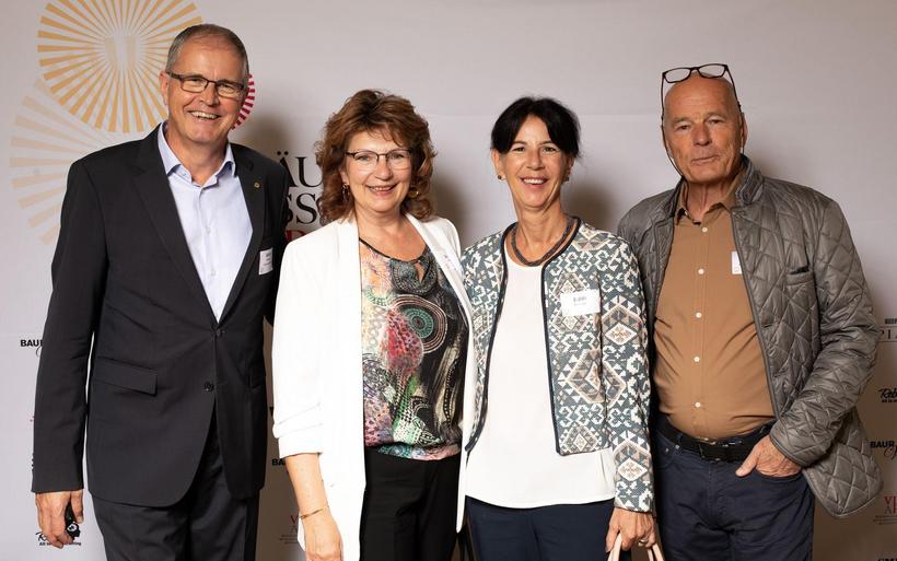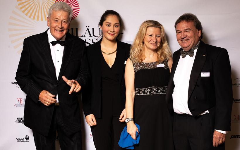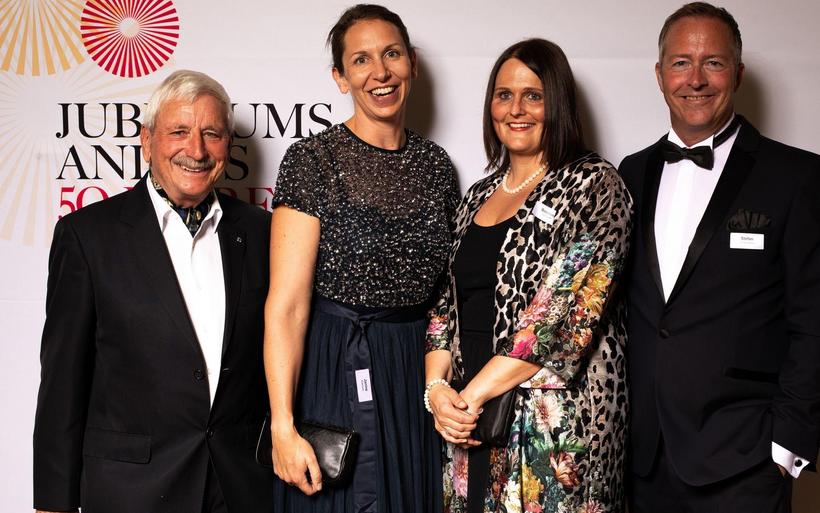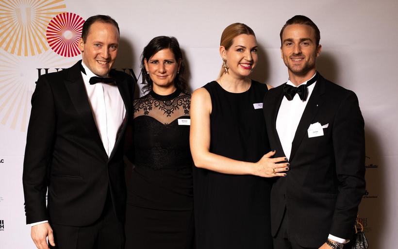 V.l.: Michael Max Müller (Präsident VDH) und Simone Müller Walt (beide Hotel Hirschen Wildhaus) mit Nina Job und Julian Thorner, Moderator des Festakts. V.l.: Michael Max Müller (Präsident VDH) und Simone Müller Walt (beide Hotel Hirschen Wildhaus) mit Nina Job und Julian Thorner, Moderator des Festakts. image : Patrick Baeriswyl, hotelinsider.ch