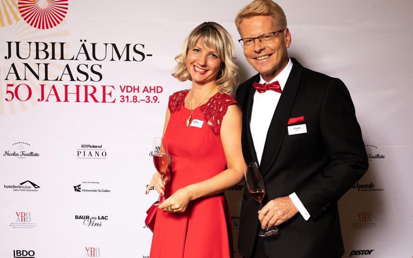 Die Vereinigung diplomierter Hoteliers (VDH) lud anlässlich des 50-jährigen Bestehens des Vereins zu einem glamourösen Fest. Abgänger des heutigen Nachdiplomstudiums (NDS) bis hin zum aktuellsten Zyklus 43 trafen sich zu einem grossen Get-Together zusammen mit Partnern der Branche im stilvollen Luxushotel «Gstaad Palace». Auch drei Vertreter des Zyklus 1, Kursteilnehmer des damaligen «Unternehmerseminars / US» waren anwesend zur Feier des Jubiläums.