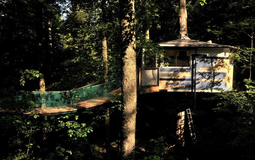 Suspendues dans des frênes, entre 5 mètres et 8 mètres du sol, les quatre maisonnettes sont équipées d’une cuisine, d’une salle de bain, d’un chauffage à bois ou à pellets. Elles peuvent accueillir 2 ou 4 personnes. Son concepteur avait investi un montant initial de 80 000 francs et disposait d’un permis d’exploitation de vingt ans, soit jusqu’à 2022. Cinq ans de démarches avaient été nécessaires à la réalisation.