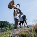 Am Freitagvormittag wurde die Skulpur in Anwesenheit ihrer Gestalter mittels Kran an ihren neuen Standort im Kreisel Stegrüti gestellt, wo sie inskünftig als Klangbotschafterin für die Ferienregion Toggenburg wirkt.