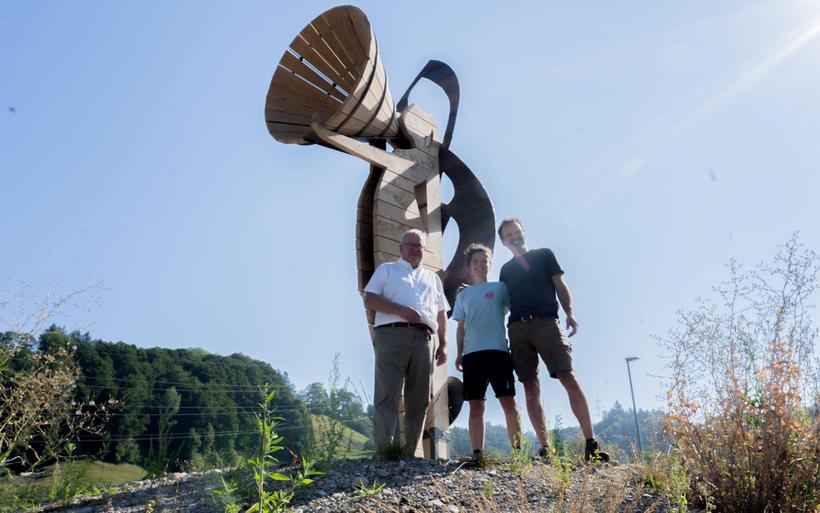 Die Skulptur gestaltet hat der Holzbildhauer Dominik Hollenstein zusammen mit seiner Tochter Christina im Auftrag von Toggenburg Tourismus, der Gemeinde Ebnat-Kappel und der Klangwelt Toggenburg. Die Wahl auf den in St. Gallen tätigen Künstler mit Toggenburger Wurzeln ist nicht zufällig gefallen.