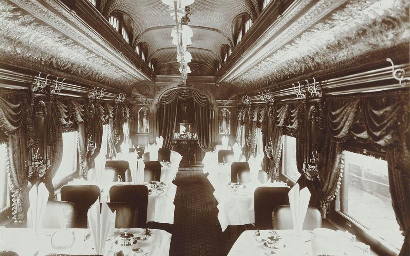 Die Kompositionen der Reisezüge der Belle Epoque konnten Schlaf-, Speise-, und Salonwagen umfassen. Das Reisegepäck landete in separaten Gepäckwagen. Grosszügige Abteile, Teakholz, Samtvorhänge prägten das Interieur. «Wer hier mitfuhr, hatte ein dickes Scheckbuch», heisst es im Bildarchiv der ETH-Bibliothek zu einem Bild eines luxuriösen Speisewagens aus der Belle Epoque ums Jahr 1880.
