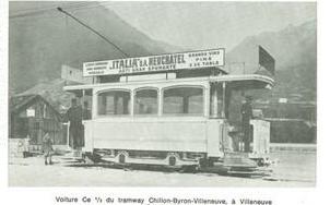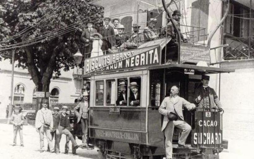 Eine Pionierleistung war auch das Tram vom Genfersee: Nur sieben Jahre nach der Probefahrt der ersten elektrischen Strassenbahn von Siemens in Berlin eröffnete 1888 eine «Tramway» am Genfersee vom Grand Hôtel in Vevey über Clarens und Montreux bis zum Schloss Chillon. Sie verband dadurch alle bedeutenden Hotels am Seeufer und war eine beliebte Aussichtsbahn für die Hotelgäste. 1903 wurde sie verlängert nach Villeneuve, womit sie auch das ehemals abgelegene Hôtel Byron erschloss. Sie war die erste elektrische Bahn der Schweiz überhaupt. In den vornehmen Wagen konnten die Hotelgäste wahlweise im geschlossenen Coupé unten oder auf dem offenen Aussichtsdeck Platz nehmen. Diese Reise erfreute sich bei den Touristen bald einer so grossen Beliebtheit, dass zahlreiche neue Wagen angeschafft werden mussten und die Bahn seit 1903 in einem durchgehenden Zehn-Minuten-Betrieb fuhr.