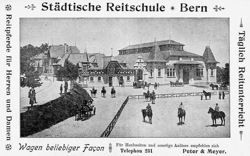Gebaut wurde die Städtische Reitschule von Bern von 1895 bis 1897 nach den Plänen von Albert Gerster, der unter anderem auch den Neubau des Grand Hotels Gurnigelbad entwarf. Das Ensemble umfasste neben einer grossen Reithalle auch Stallungen, Stellplätze für Kutschen und mehrere Wohnungen. Vor der Reitschule befand sich ein vorgelagerter Reitergarten.