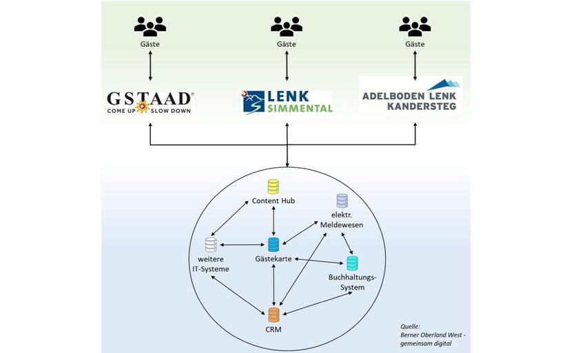 «Berner Oberland West – gemeinsam digital» wird von der Neuen Regionalpolitik (NRP) unterstützt und ist ein Nachfolgeprojekt des Innotour-Projektes DigiKoop. Die Destination Gstaad war unter der Leitung von Gstaad Saanenland Tourismus Pilotregion von DigiKoop und hat im Mai 2021 die Gstaad Card eingeführt. Um den Prozess der digitalen Transformation weitervoranzubringen, wurde gemeinsam mit den beiden Partnerorganisationen Tourismus Adelboden-Lenk-Kandersteg und Lenk-Simmental Tourismus das Projekt Berner Oberland West – gemeinsam digital lanciert. Das Projekt wird durch die conim ag, die touristika GmbH und das CRED-T (Universität Bern) begleitet.