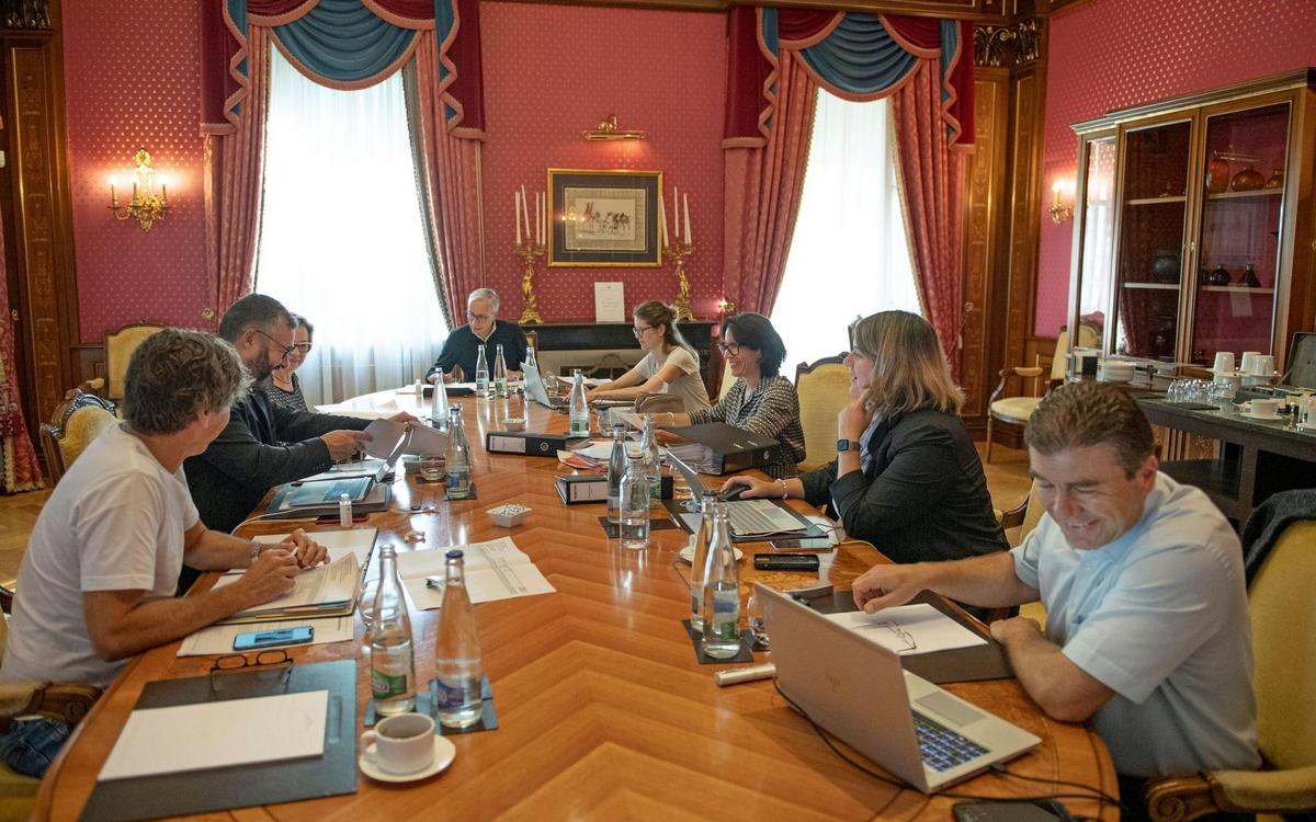 Zur diesjährigen Jurierung traf sich die siebenköpfige Jury im Hotel Beau-Rivage Palace in Lausanne. Die Zusammensetzung ist unverändert (v. l.): André Lüthi, VR-Präsident und CEO Globetrotter Group; Thomas Steiner, Tourismusexperte und CEO Immotour sàrl; Nadia Fontana-Lupi, Direktorin Mendrisiotto Turismo; Jean-François Roth, Jurypräsident, ehem. Präsident Schweiz Tourismus und SRG (oben am Tisch); Anja Peverelli, Milestone-Geschäftsführerin; Nathalie Seiler-Hayez, Directrice Hôtel Beau-Rivage Palace, Lausanne; Monika Bandi, Co-Leiterin Forschungsstelle Tourismus, Universität Bern; Urs Wohler, Geschäftsführer Niesenbahn AG.[IMG 12]