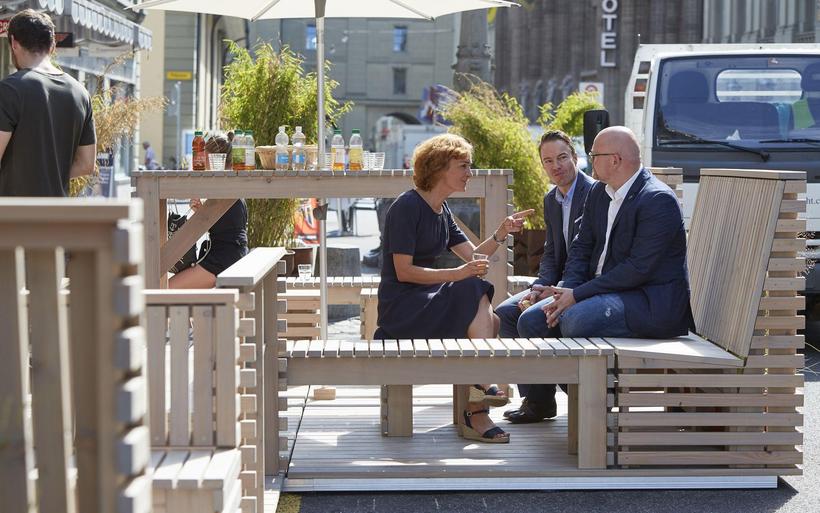 Der Parklet-Versuch ist Teil einer ganzen Reihe von Massnahmen, mit denen die Berner Stadtregierung den öffentlichen Raum aufwerten will. Im Rahmen der Aktion «Pop-up Bern» geben die Behörden interessierten Privaten auch Baukasten-Kits für die Möblierung etwa von kleinen Plätzen ab.