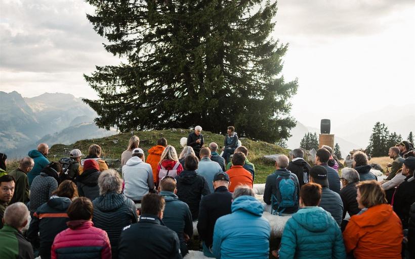 Zu einem wahren Wandergipfel gehört natürlich das Wandern selbst. Aus den Sesseln des edlen 5-Sterne-Hauses gehts am späten Nachmittag mit Bergschuhen und Faserpelz per luftige Sesselbahn aufs Horneggli rauf. Nach einer kurzen Wanderung trifft man sich am Lagerfeuer, wo der ehemalige SBB-Chef Benedikt Weibel unter anderem von seiner Tätigkeit als Bergführer und über seine Liebe zu den Alpen erzählt: «Die Berge sind immer die Konstante in meinem Leben gewesen.»