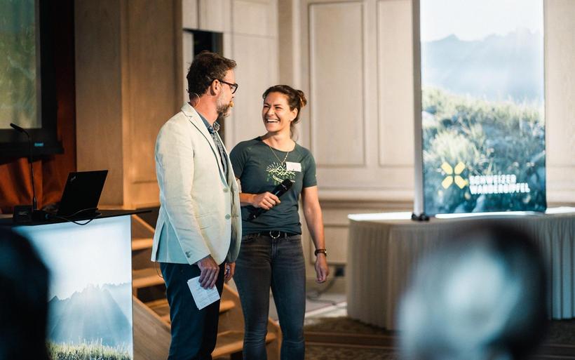 Der Anlass startet ohne Wanderschuhe, jedoch mit Kaffee und Gipfeli im edlen Gstaader «Palace». Moderator Nik Hartmann, der einst mit Hund quer durchs Land unterwegs war, führt mit viel Spontaneität durch den Anlass. Schnell geht es in medias res: Michael Roschi, Geschäftsführer von Schweizer Wanderwege, zeigt auf, wie sehr das Wandern an Attraktivität gewonnen hat.