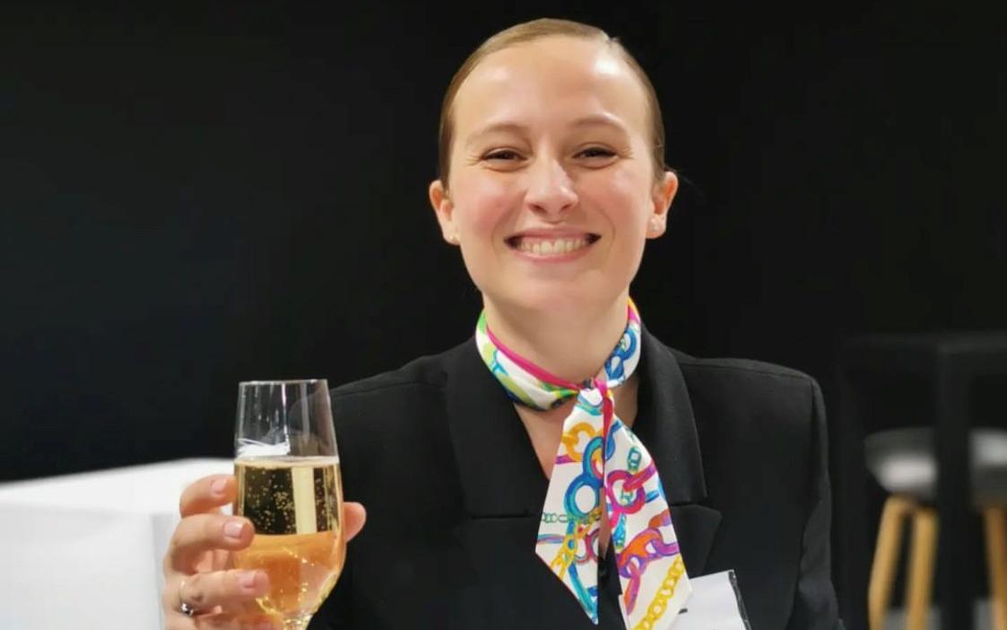 La dernière épreuve, le sabrage du champagne demande de la précision, une technique qu'elle apprend pour le concours avec son chef sommelier: «Il faut travailler avec une bouteille bien froide pas trop inclinée et suivre la ligne de la bouteille.»