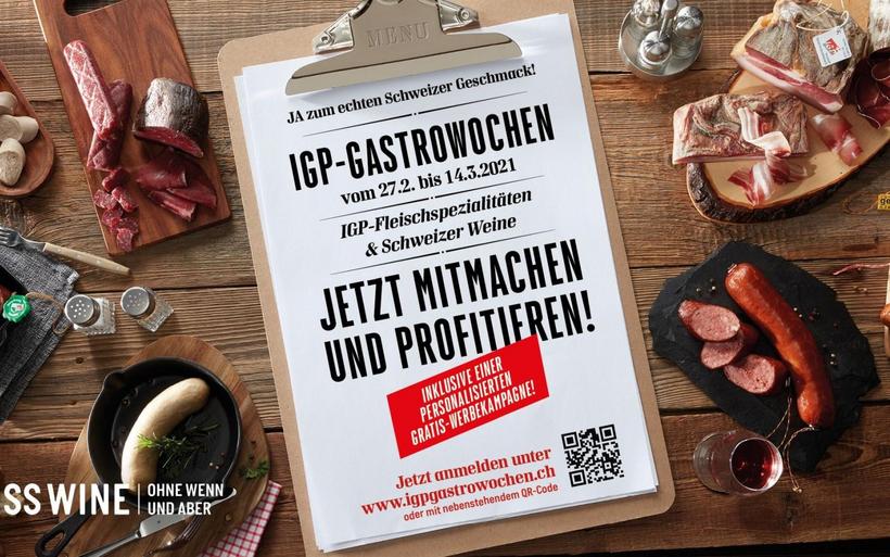 Die Schweizerische Vereinigung der AOP-IGP lanciert in Zusammenarbeit mit GastroSuisse, Proviande, Swisswine und dem Grossverteiler Prodega Gastrowochen mit Schweizer IGP-Spezialitäten. Während der ersten Ausführung dieses nationalen kulinarischen Events vom 27. Februar bis 14. März 2021 sollen authentische und geschmacksvolle Schweizer Produkte hervorgehoben werden, wie die Initianten in einer Mitteilung schreiben.