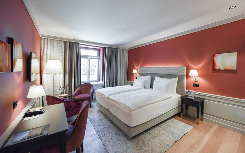 Mit dem Umbau lebt der alte Glanz des «Cresta Palace» neu auf. So spiegelt das neue Interior- und Farbkonzept Elemente des Jugendstils wider, spielt mit Stofflichkeit, überzeugt mit Details und Materialien. Bei der Auswahl der Möbel und Betten setzte man auf Manufakturen und entwarf eigens Möbelstücke.