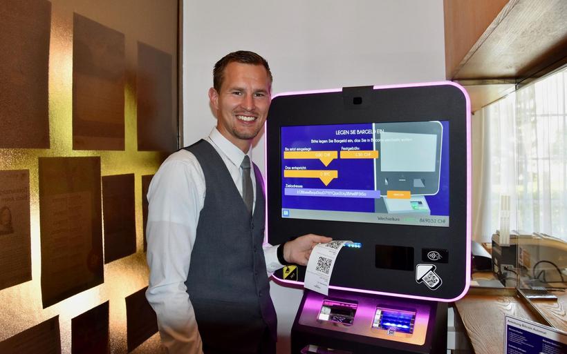 Der Bitcoin-Automat steht im Hotel Adula im ehemaligen Kassenraum, wo die Gäste früher ihre Zimmerrechnungen beglichen, direkt neben der Reception. Hoteldirektor Dennis Berlin sieht im Bitcoin-Automat auch eine Möglichkeit, mit dem die Gäste ihren Liebsten etwas Besonderes heimbringen können. «Da die Bitcoins noch relativ neu auf dem Markt sind, sind sie ein wertvolles und originelles Mitbringsel», sagt Berlin. Zudem akzeptieren in der Schweiz neben der SBB immer mehr Firmen und Unternehmen Kryptowährungen als Zahlungsmittel. (htr)