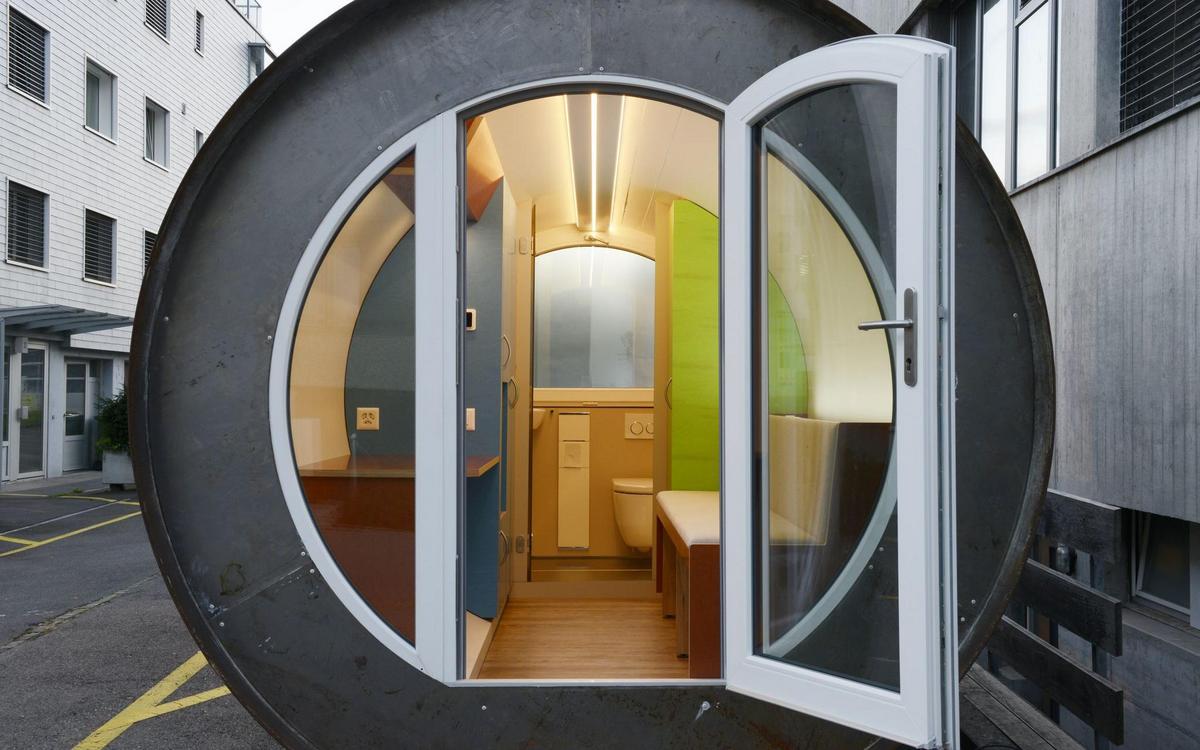Strom- und Wasseranschlüsse vorausgesetzt, ist der Standort des Röhrenhotels grundsätzlich flexibel. Allerdings erfordert der Transport der je 25 Tonnen schweren Röhrenzimmer einen gewissen Aufwand. «Areale, die für Zwischennutzungen freigegeben sind, würden sich besonders gut eignen», sagt Bauherr Brendel. «Aber zwei bis drei Jahre an einem Ort sollten es schon sein». Ein Baugesuch hat er bereits eingereicht. Das Röhrenhotel soll professionell vermarktet werden. Buchung und Self-Check-in lassen sich via Smartphone abwickeln. (htr)