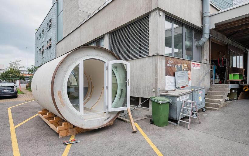 Es ist ein Exponat der aussergewöhnlichen Art, welches die Besucherinnen und Besucher an der diesjährigen Zuger Messe zu Gesicht bekommen: eine zum Hotelzimmer umfunktionierte Betonröhre, die beim Bau des 2018 fertiggestellten Entwässerungstunnels der Stadt Zug übrig blieb. Dank des ausgeklügelten Innenausbaus kommen auf den rund acht Quadratmetern keinerlei Komfortwünsche zu kurz. Dereinst sollen dem Prototyp fünf weitere Röhrenzimmer folgen, die pyramidenförmig aufgetürmt zur originellsten Herberge im Zugerland werden sollen.