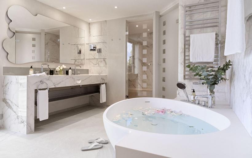 Die neuen Junior und Superior Suiten im Hotel Eden Roc Ascona haben einen offen gestalteten Grundriss, Südterrassen und weiträumige, lichtdurchflutete Badezimmer mit Seesicht. Freistehende Badewannen und der Blick auf den Lago Maggiore sollen den Aufenthalt in diesen Räumen zum Erlebnis machen.