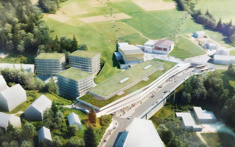 Auf 60'000 Quadratmeter findet man eine spannende Verbindung von Vielfalt und Komfort. Wohnen ist hier genauso möglich wie Einkaufen, Essen, Spielen, Entspannen oder einfach nur Parken, um direkt ins Ski- und Wandergebiet zu gelangen.
