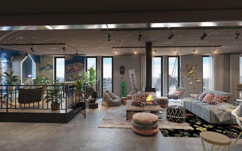 In der praktisch ausgestatteten Küche im Gemeinschaftsbereich, dem sogenannten «Backyard» können mitgebrachte oder gelieferte Lebensmittel zubereitet, Snacks erwärmt oder einfach gemeinsam Zeit verbracht werden. Zudem können sich die Bewohner beim Pool-Billard oder in der Kaminecke mit einem Buch oder bei einem guten Gespräch entspannen. Mit wenigen Handgriffen lässt sich der «Backyard» auch in eine «Workshop Area», ein Yoga-Studio oder in eine kleine Konzertbühne verwandeln.
