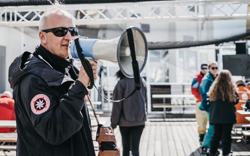 Megaphone, Übernachtungsgutscheine und Werbematerial: Bestens ausgerüstet beeindruckten 20 Hoteliers aus Zürich und Laax die Gäste höchstpersönlich mit einer aussergewöhnlichen Aktion im Skigebiet: Die Gruppe besuchte während der Mittagszeit vier gut frequentierte Restaurants in der Destination Laax und verblüffte mehrere hundert Gäste.